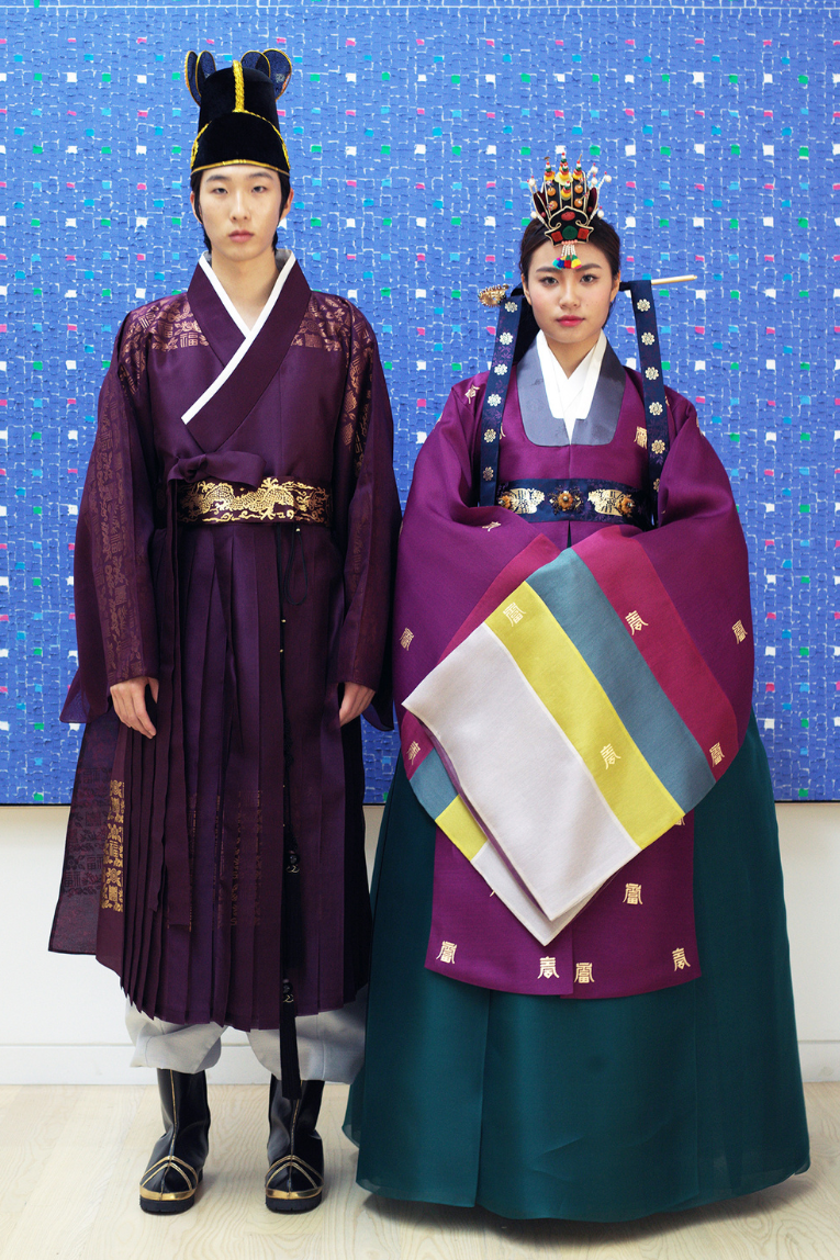 Ceremonial paebaek hanbok for husband and wife. Available for rental only.