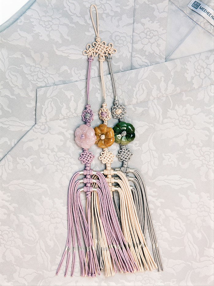 When not being used to adorn your hanbok, this norigae can be hung on handles of your favorite cabinet, doors, or can adorn your walls. Pass your treasured norigae down for generations to come.