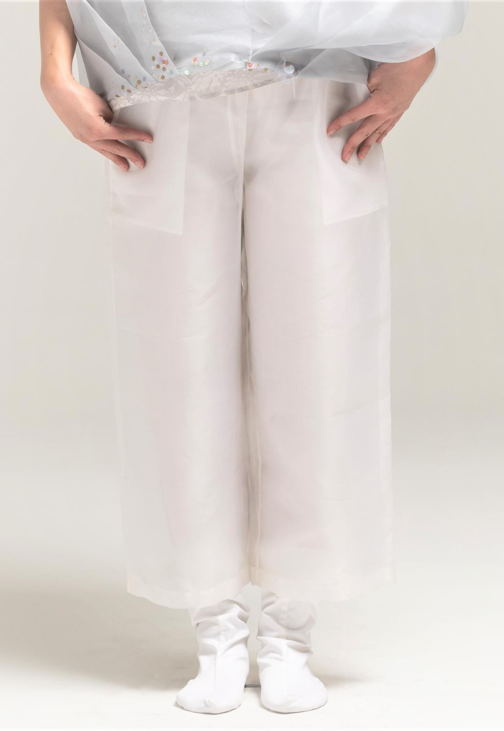 Transparency Stretch-Waist Silk Pants (With Pockets)